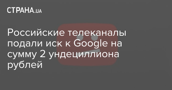 Общий иск 17 российских телеканалов к Google из-за блокировки их аккаунтов на YouTube достиг 2 ундециллионов рублей (единица с 36 нулями), сообщает российский РБК со ссылкой на источник.