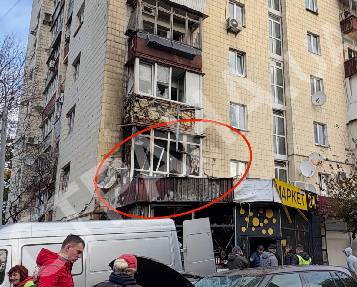 Появились кадры одной из наиболее поврежденных квартир в Киеве после падения обломков БПЛА. Она находится на втором этаже.