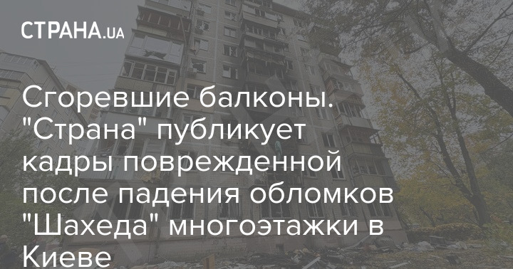 Сгоревшие балконы. "Страна" публикует кадры поврежденной после падения обломков "Шахеда" многоэтажки в Киеве