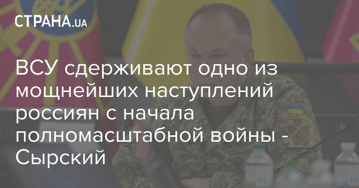 Главнокомандующий ВСУ Александр Сырский заявил, что украинские силы сдерживают одно из мощнейших наступлений россиян с начала полномасштабного вторжения РФ.