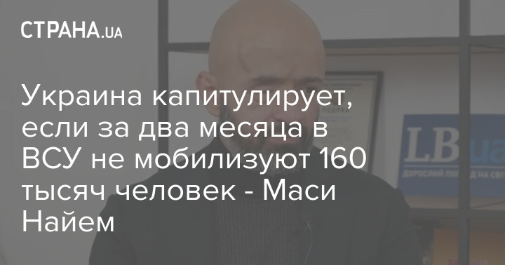 "Если 160 тысяч человек не придут мобилизоваться в течение следующих двух месяцев, мы подписываем капитуляцию. Ну, потому что это же честный ответ. Вы не хотите идти воевать, но кто-то это должен делать", – сказал Найем.