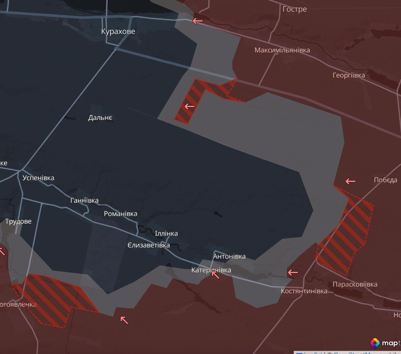 Согласно карте военного паблика Deep State, они атаковали на юг через трассу, ведущую в Курахово с востока, и продвинулись в направлении села Дальнее.
