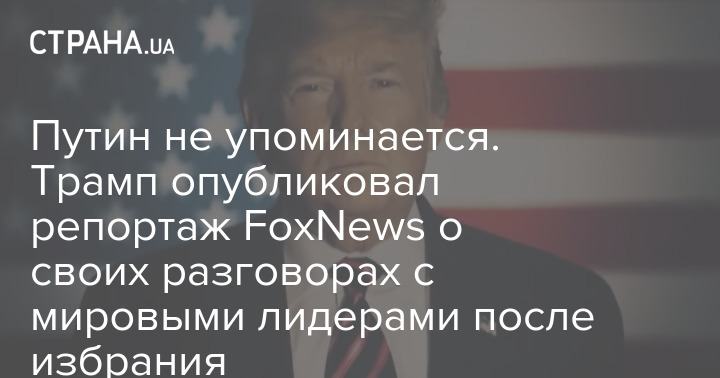 Победивший на выборах президента США Дональд Трамп разместил у себя в сети Truth Social сюжет FoxNews о своих разговорах с мировыми лидерами, проведенными уже после избрания, в котором нет упоминания о главе Кремля Владимире Путине.