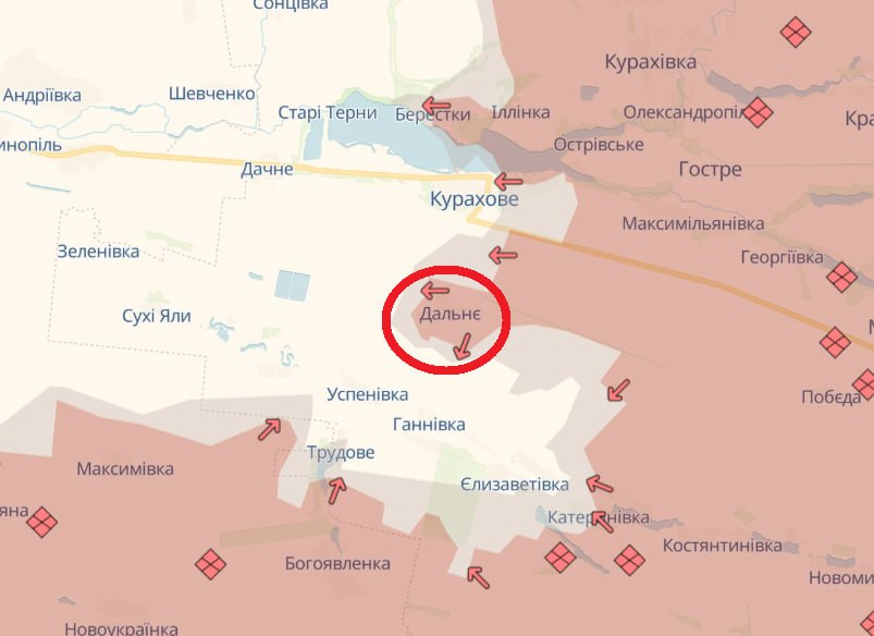Россияне захватили Дальнее к югу от Курахово Донецкой области. Об этом сообщает военный паблик Deep State.