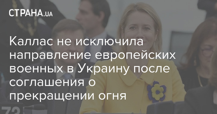 Верховный представитель по иностранным делам Европейского союза Кая Каллас, которая сегодня прибыла в Киев, не исключила направление европейских военных в Украину после того как будет достигнуто соглашение о прекращении огня на линии фронта.
