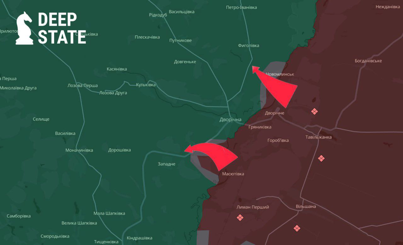 Севернее россияне продолжают относительно быстро продвигаться к югу от Покровска. Они приблизились к населенным пунктам, через которые идет дорога в направлении Курахово - Шевченко, Новотроицкому и Новоеленовке.