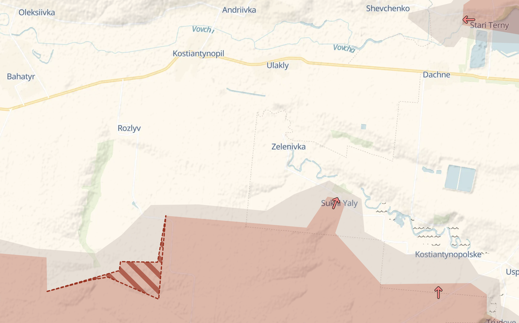 Также россияне наступают западнее - на село Песчаное, до которого им осталось менее километра. Это движение, как предполагают украинские военные, направлено на приближение к западной окраине Покровска и контроль за трассой, ведущей в город со стороны Днепропетровской области.