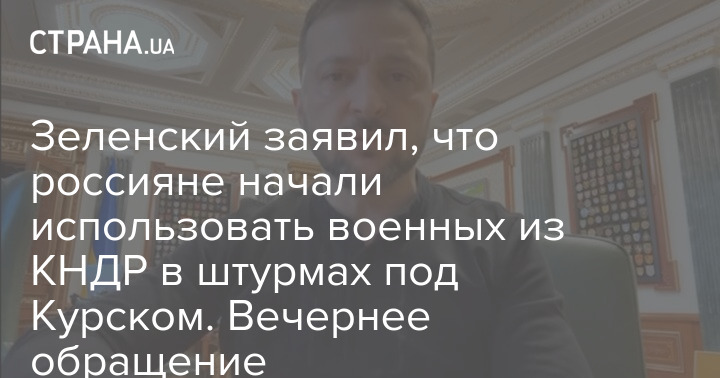 Зеленский заявил, что россияне начали использовать военных из КНДР в штурмах под Курском. Вечернее обращение