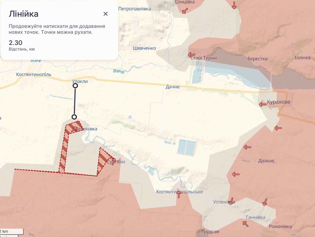 Кроме того, российские войска уже примерно в полутора километрах от дороги, которая ведет в Великую Новоселку из Запорожской области. Таким образом, под угрозой перерезания сейчас две оставшиеся трассы в город - северная и западная.
