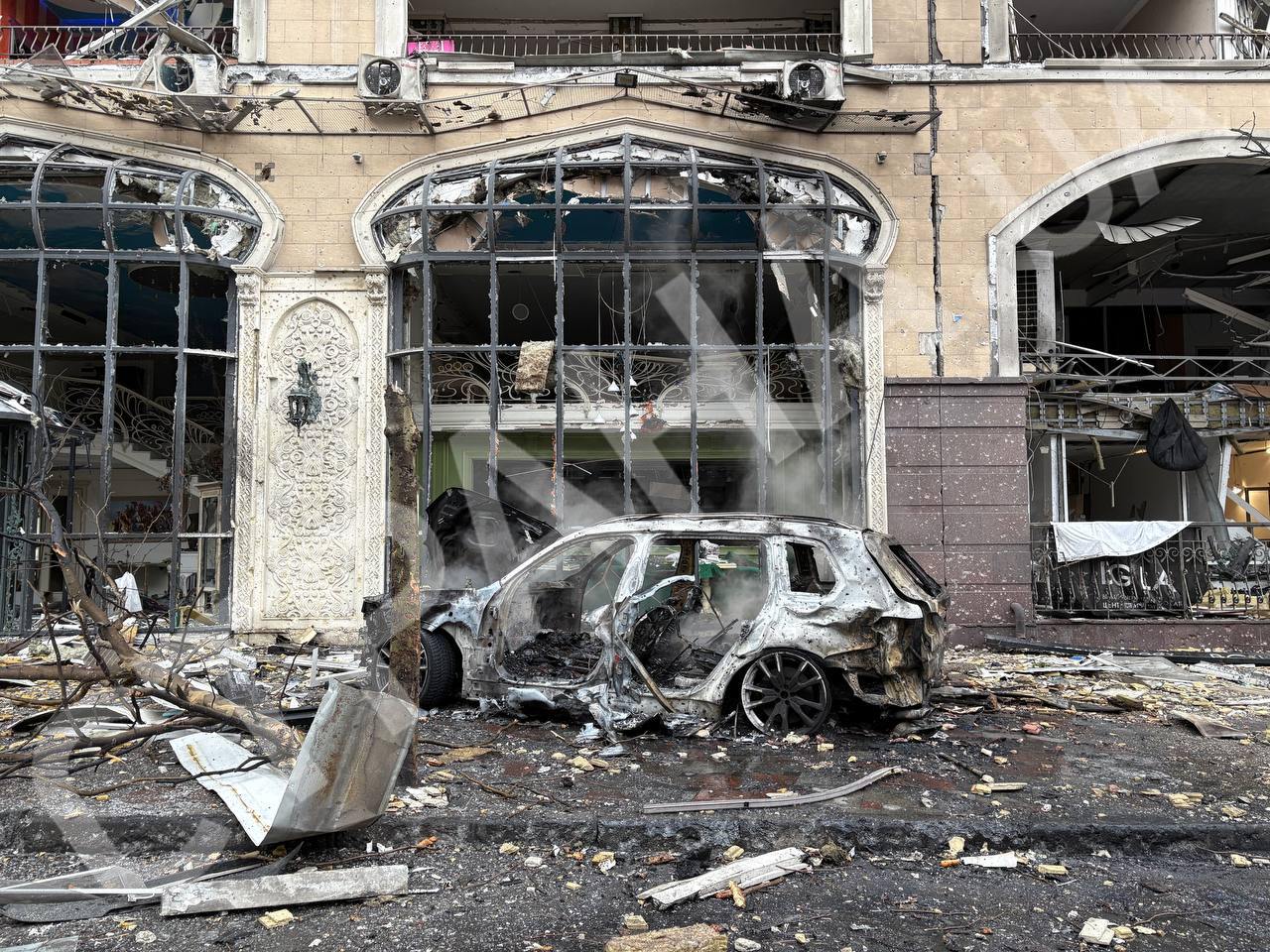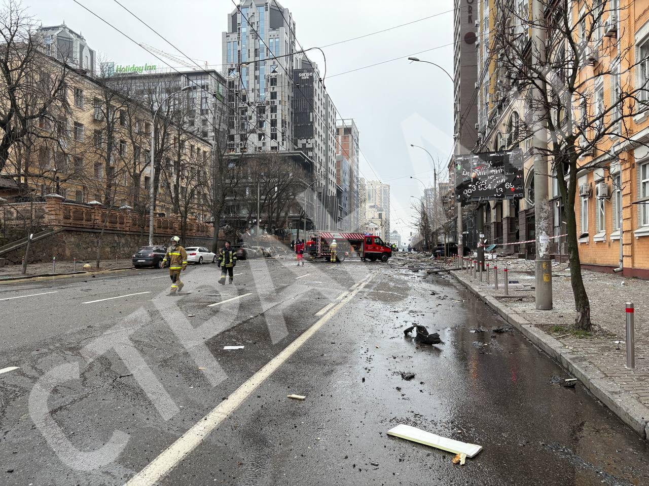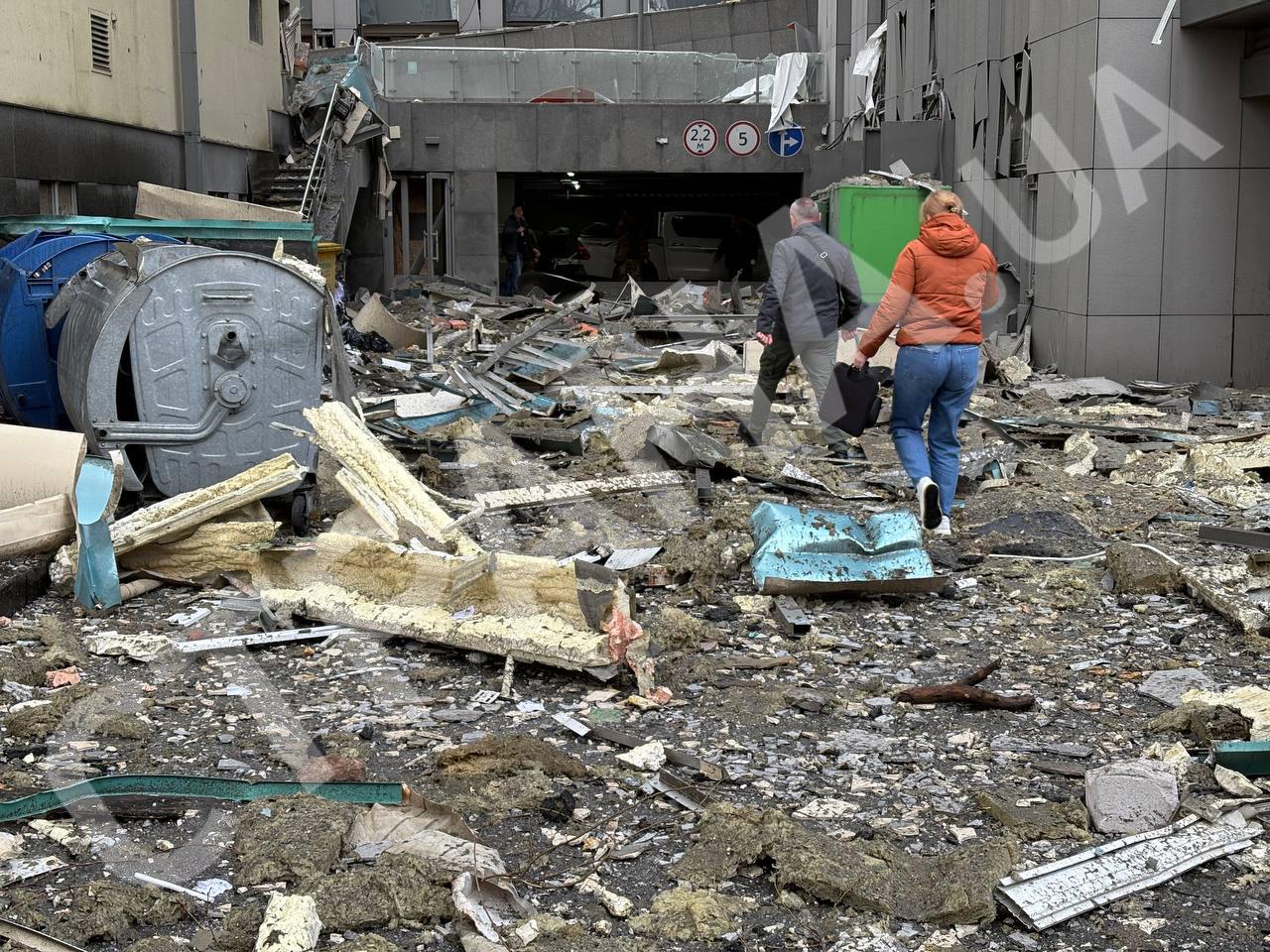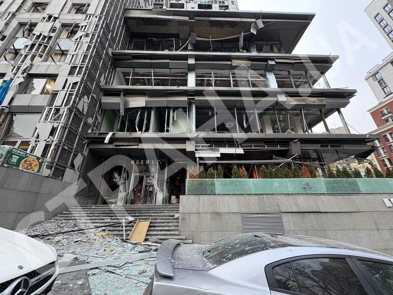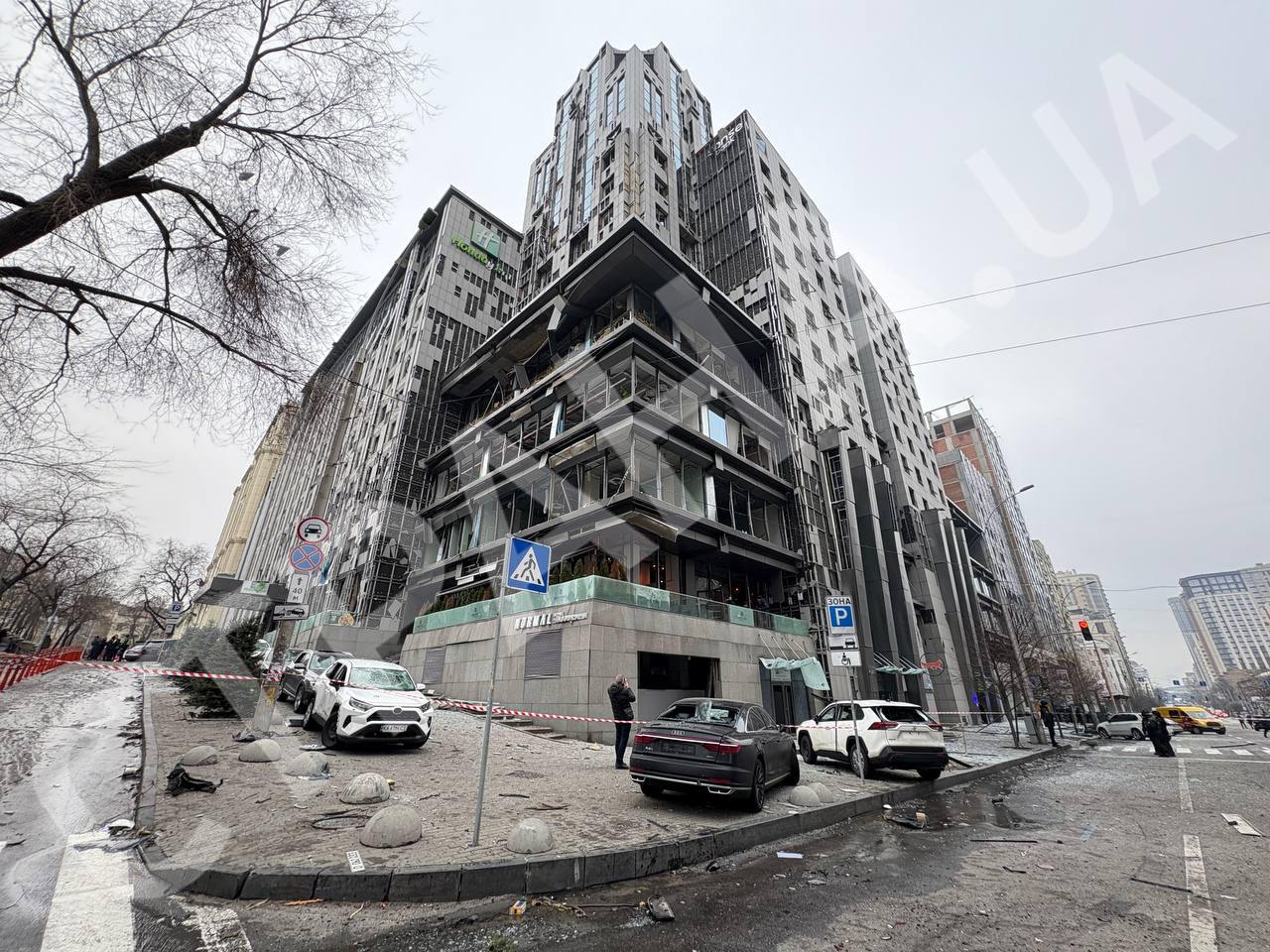 Последствия ракетной атаки в гостинице Holiday Kyiv, которая расположена в БЦ "Торонто".