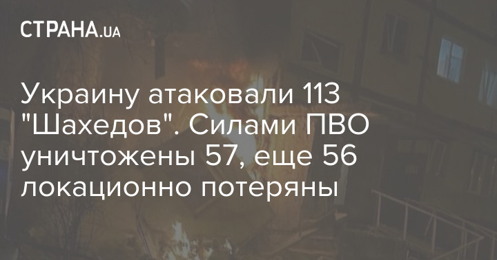Сегодня ночью РФ атаковала Украину зенитной управляемой ракетой С-400 и 113 ударными БпЛА типа "Shahed" и беспилотниками других типов. Сбили 57 и еще 56 локационно потеряны, не достигнув своих целей.