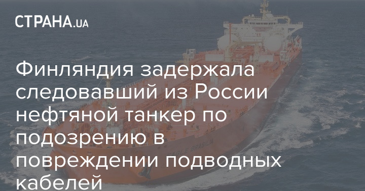 Финляндия задержала нефтяной танкер Eagle S под флагом Островов Кука, следовавший из России, по подозрению в повреждении сразу четырех кабелей в Балтийском море: одного - электропитания и трех - интернет-линий, соединяющих Финляндию и Эстонию.