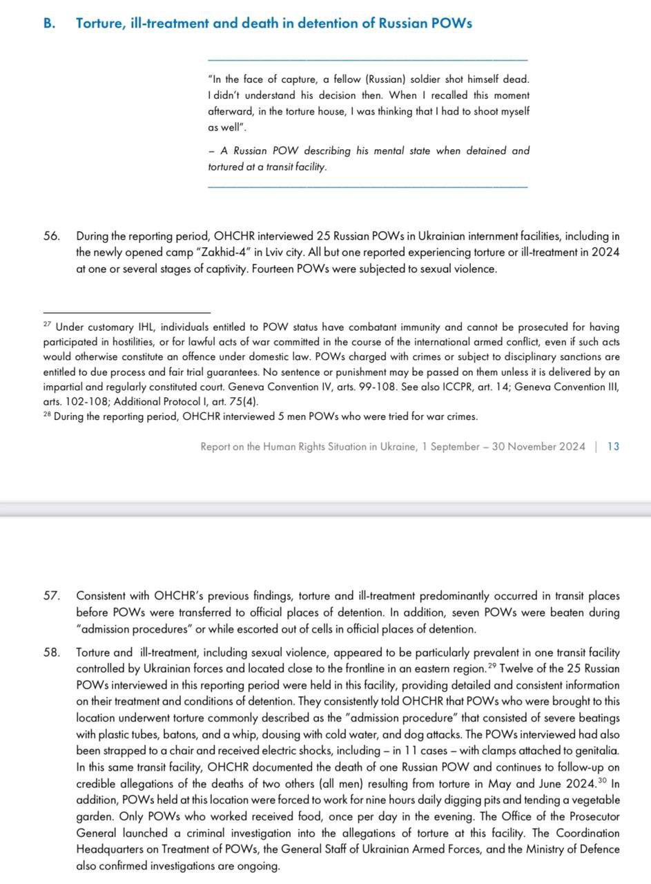 Отметим, что в докладе ООН пыткам в отношении пленных россиян посвящен целый раздел.