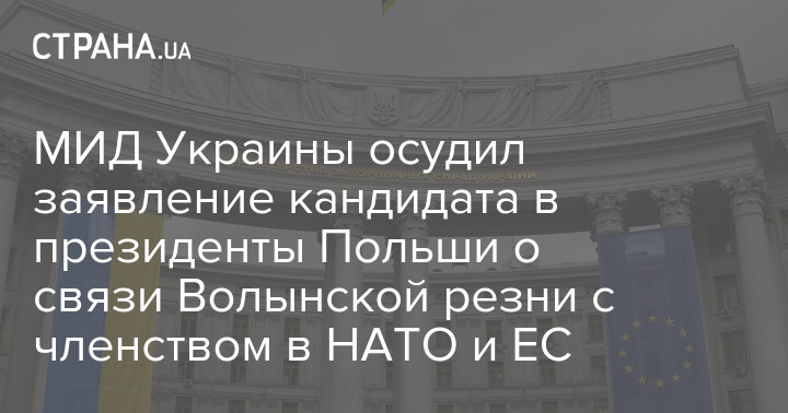 МИД Украины осудил заявление кандидата в президенты Польши о связи Волынской резни с членством в НАТО и ЕС
