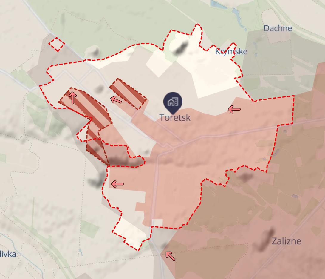 В Торецке продвинулись в западных районах города. Под украинским контролем остается меньшая часть Торецка.