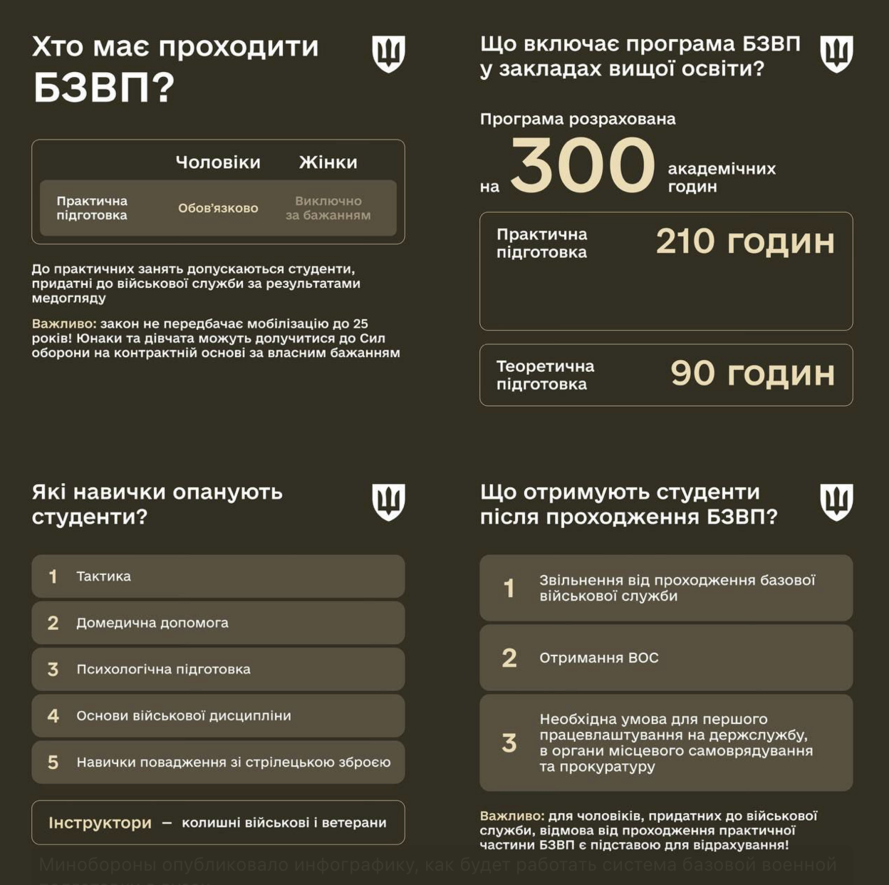 13:12 Минобороны опубликовало инфографику, как будет работать система базовой военной подготовки в вузах.