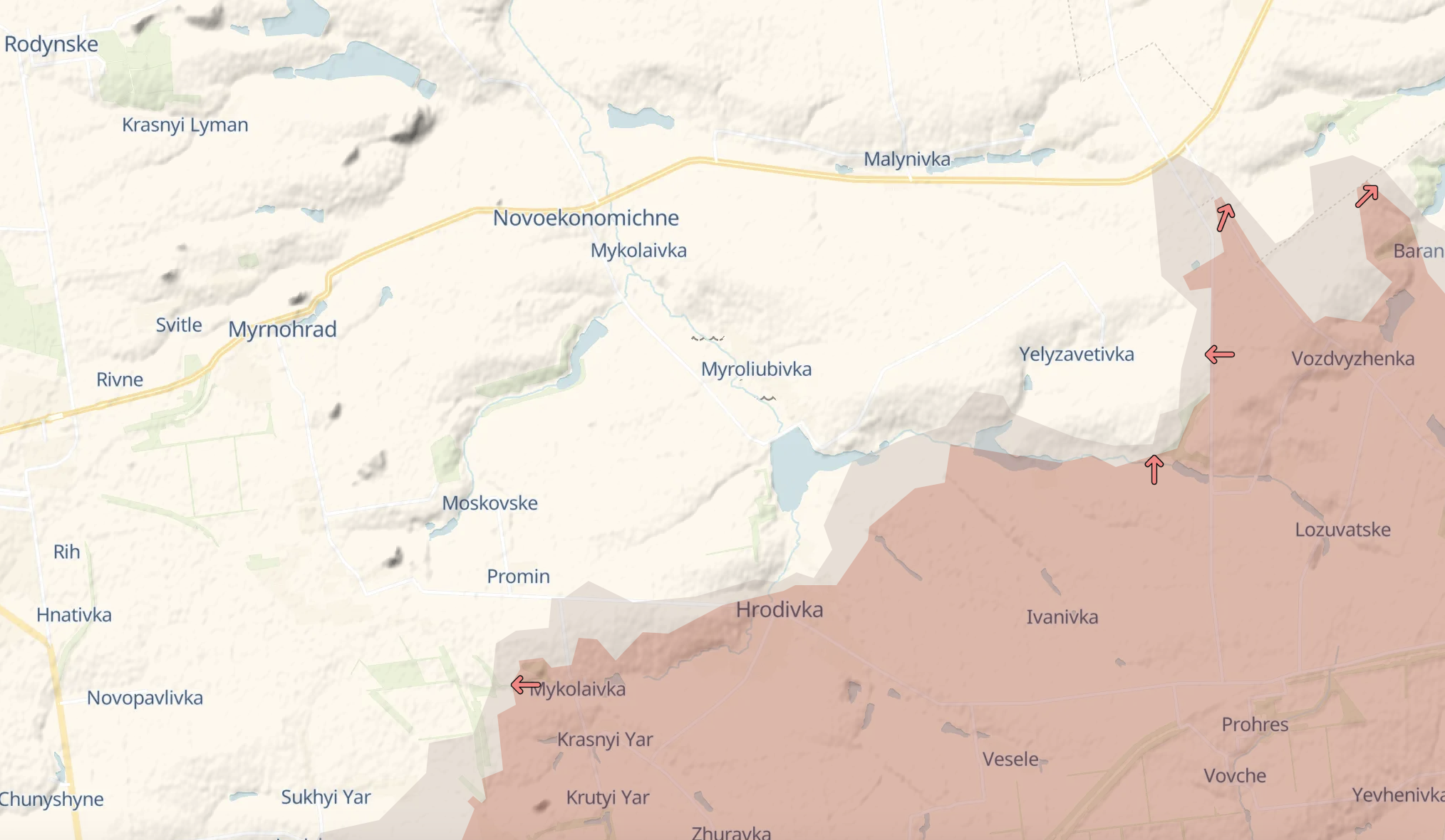 Также ухудшается ситуация восточнее Покровска - в районе Мирнограда. Полиция призывает жителей этого города эвакуироваться - армия РФ уже в двух километрах от Мирнограда. Там нет света, питьевой воды и газа. Почти не работает мобильная связь. Уничтожены предприятия и больница.