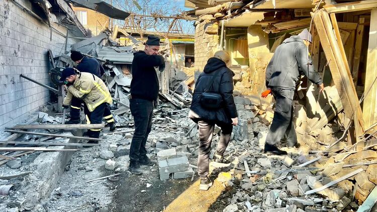Последствия утреннего удара по Херсону. Фото: Херсонская ОВА