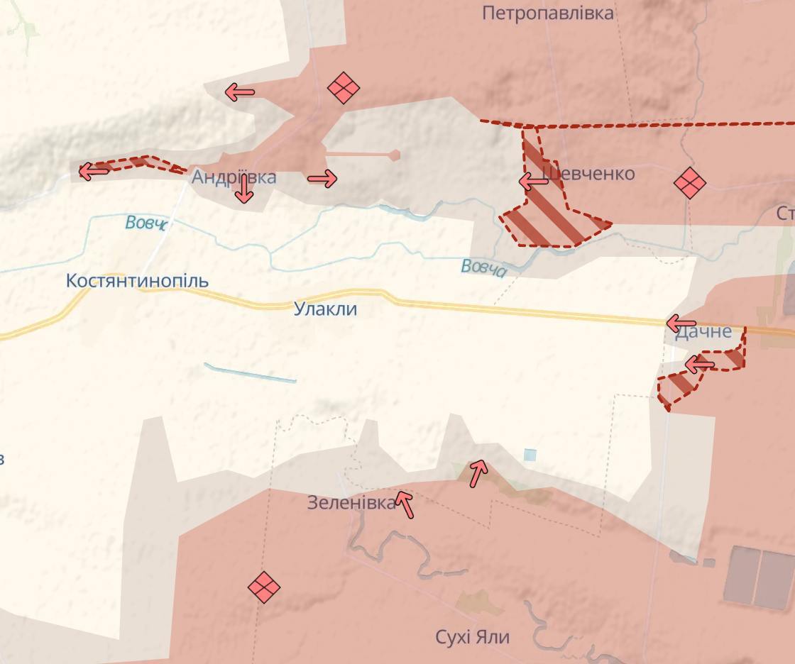 10.06 Армия РФ продолжает активно наступать к западу от Великой Новоселки, свидетельствует карта Deep State.