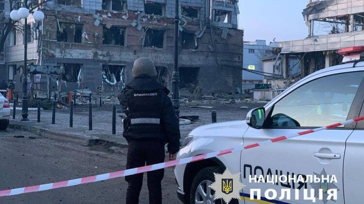 Национальная полиция уже показала фото последствий удара по Киеву.