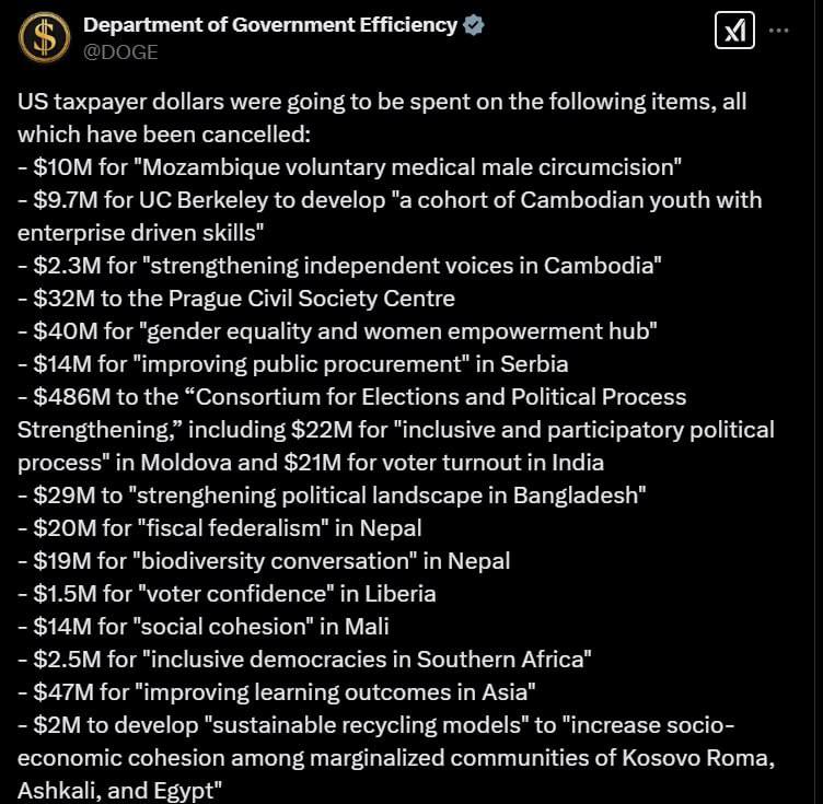 В сообщении DOGE отмечается, что все эти траты были отменены.