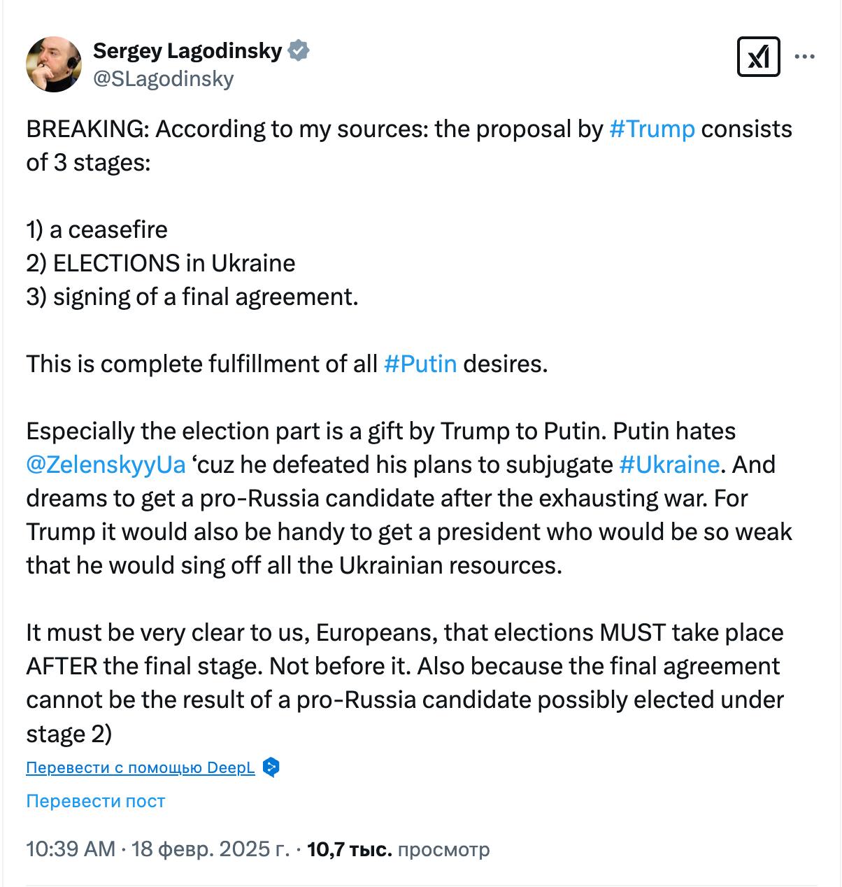 Лагодинский привел план Трампа. Фото: x.com/SLagodinsky