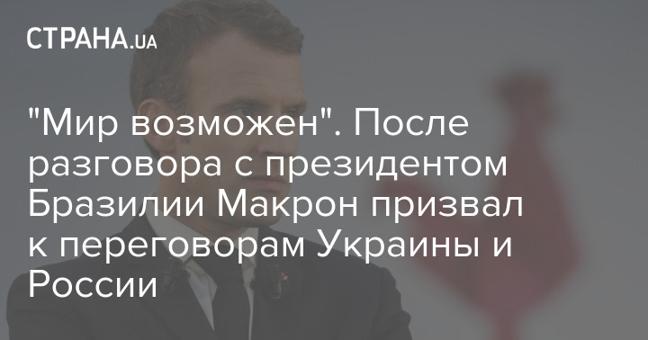 "Только что разговаривал с президентом Лулой (президент Бразилии Лула да Силва - Ред.). Мы вместе верим, что мира в Украине можно достичь только путем переговоров, объединив Россию и Украину за одним столом. Мир возможен, и международное сообщество должно мобилизоваться", – заявил президент Франции.