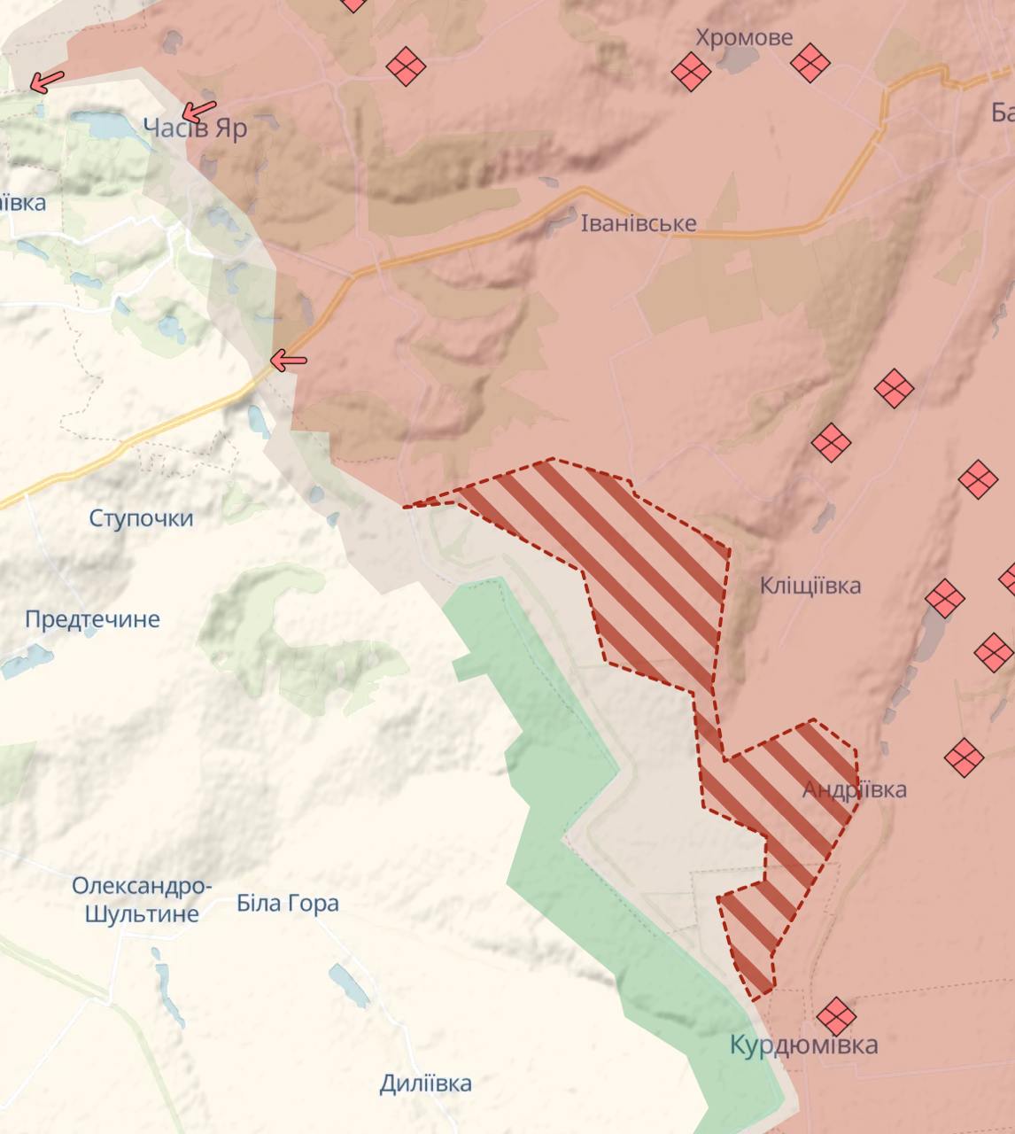 Кроме того, армия РФ отбила некоторые позиции в Песчаном, которые недавно вернули себе ВСУ. Еще россияне существенно продвинулись в районе Клещеевки и Андреевки, где у них давно не было успеха.