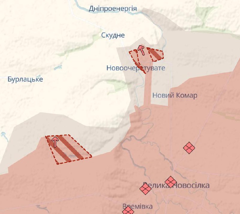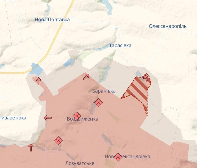 При этом РФ продолжают свое продвижение севернее Великой Новоселки и около Барановки, что рядом с трассой с Покровска на Константиновку.