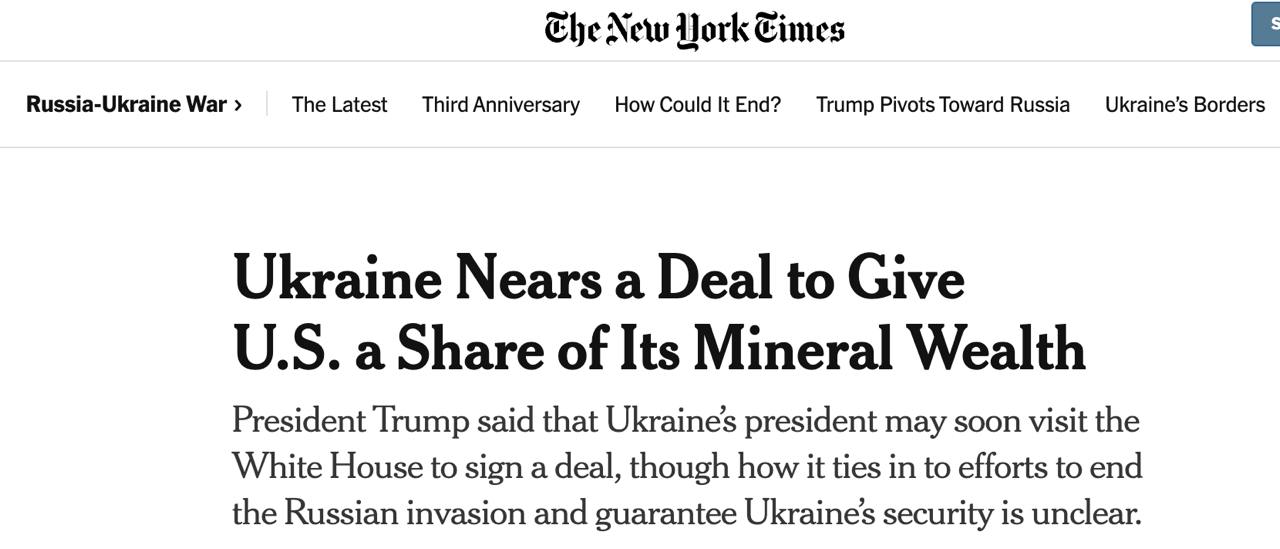 В новой версии соглашения о полезных ископаемых нет запрашиваемых Украиной гарантий безопасности - NYT