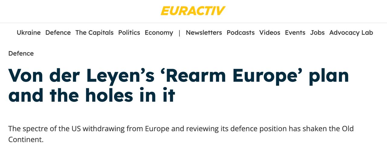 Глава Еврокомиссии Урсула фон дер Ляйен представила план вооружения Евросоюза на 800 миллиардов евро.