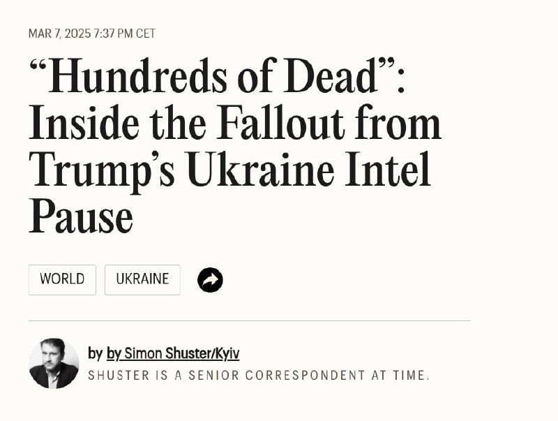 "Сотни погибших". Запрет на передачу Киеву разведданных США привел к большим потерям ВСУ — Time