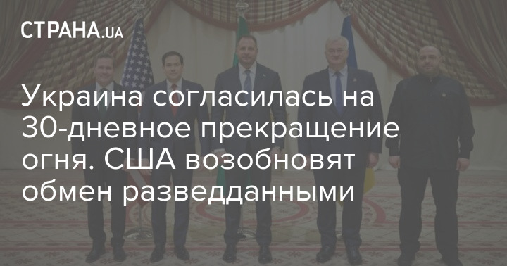 Украина согласилась на 30-дневное прекращение огня. США возобновят обмен разведданными