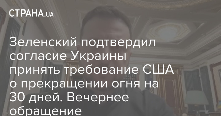 Зеленский подтвердил согласие Украины принять требование США о прекращении огня на 30 дней. Вечернее обращение