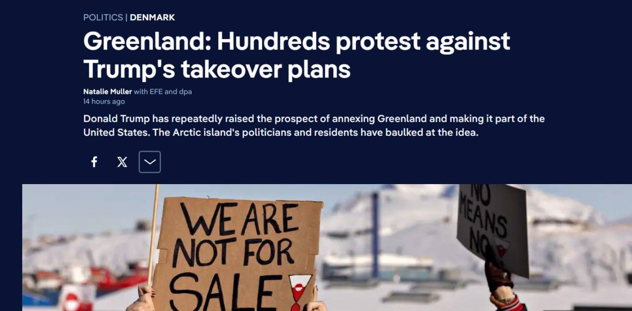 В Гренландии сотни людей вышли на улицы, чтобы выразить протест против заявлений президента США Дональда Трампа о намерении аннексировать их остров.