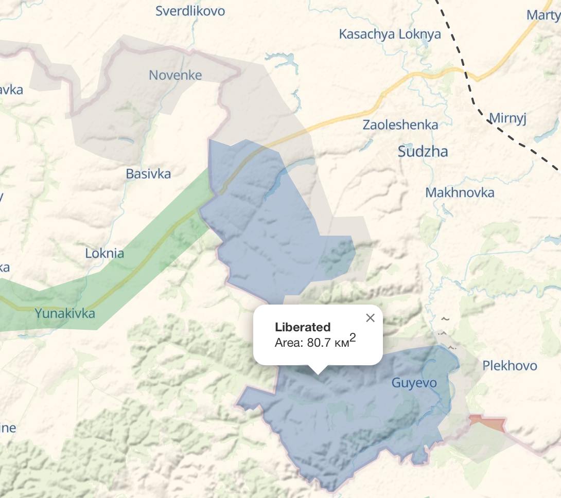 В целом они взяли еще 30 квадратных километров территории Курской области, и теперь контролируемый Украиной участок уменьшился до 80 квадратных километров (что уже меньше российского плацдарма под Липцами Харьковской области).