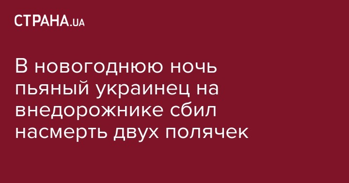 В новогоднюю ночь 31 декабря в польском городе Еленя Гора нетрезвый украинец за рулем внедорожника смертельно травмировал двух молодых девушек - 14-ти и 16-ти лет. Об этом сообщает "Польское радио".