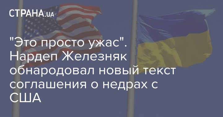 Народный депутат Ярослав Железняк заявил, что ознакомился с проектом соглашения о недрах, который подготовили США и передали Украине.