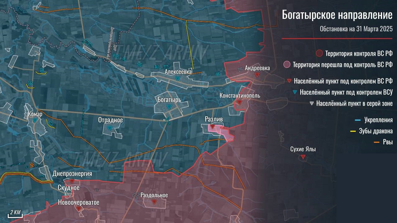 Захват Разлива открывает дорогу россиянам для выхода на трассу Курахово-Запорожье, в тыл к украинским войскам в районе Константинополя и с угрозой для села Богатырь, которое находится на трассе.