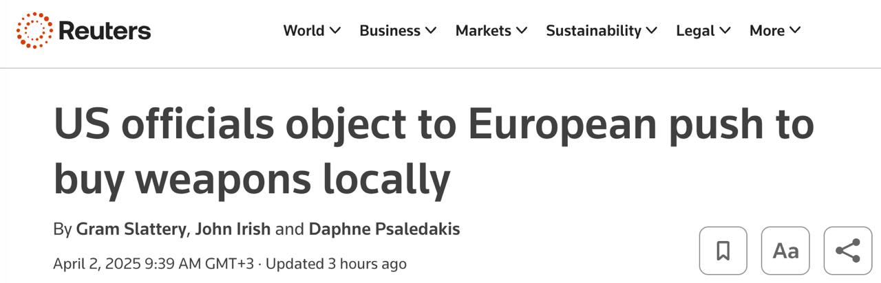 Напомним, европейцы задумались о сокращении закупок американского оружия из-за критики Трампом союзников по НАТО и приостановки военной помощи Украине.