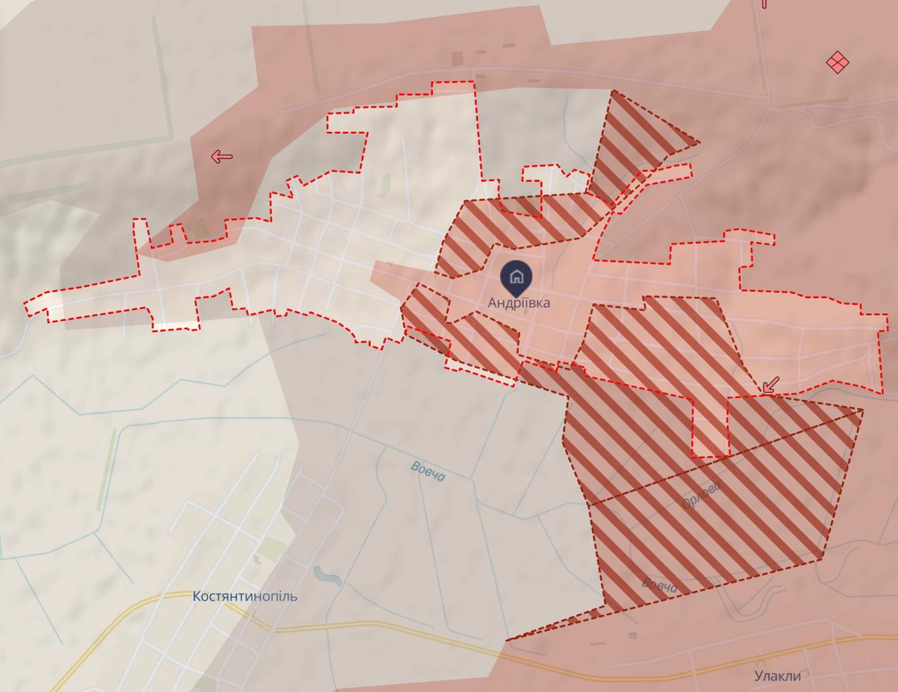 Фактически весь населенный пункт уже указан под контролем РФ или в серой зоне.
