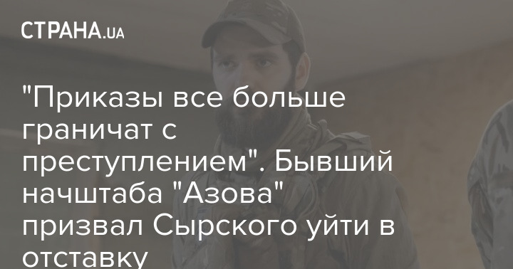 Бывший начальник штаба 12-й бригады специального назначения "Азов" Богдан "Тавр" Кротевич призвал главнокомандующего ВСУ Александра Сырского уйти в отставку.