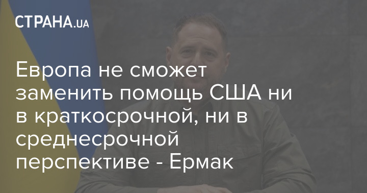 Европа не сможет заменить помощь США "ни в краткосрочной, ни в среднесрочной перспективе". Об этом заявил глава Офиса Президента Андрей Ермак в интервью Corriere della sera.