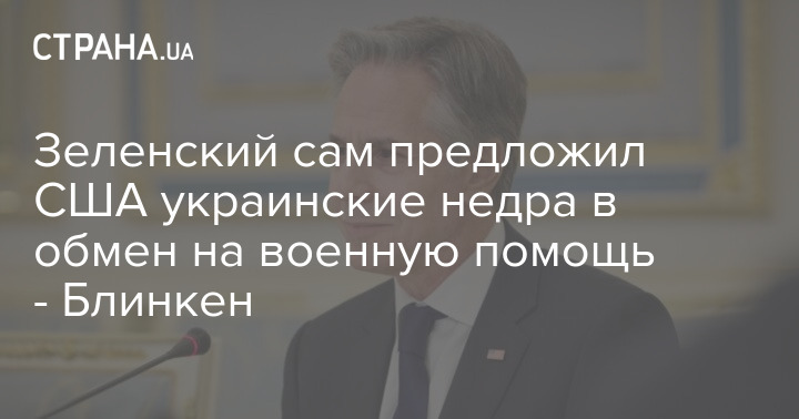 Бывший госсекретарь США Энтони Блинкен заявил, что президент Украины Владимир Зеленский сам предложил США украинские недра в обмен на военную помощь.