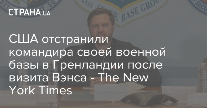 США отстранили командира своей военной базы в Питуффике (Гренландия) Сюзанну Майерс после визита на остров вице-президента США Джея Ди Вэнса.