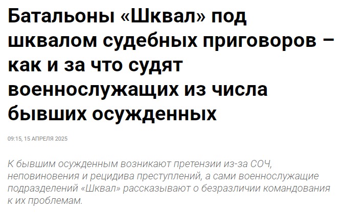 В реестре насчитывается около 70 приговоров в отношении военнослужащих подразделений специального назначения "Шквал", сформированных из бывших заключенных. Существует примерно такое же количество судебных постановлений по уголовным делам, которые находятся на стадии рассмотрения судов либо на этапе досудебного расследования.