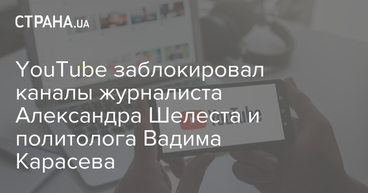 Видеохостинг YouTube заблокировал два канала украинского журналиста Александра Шелеста "Александр ШЕЛЕСТ" и "ШЕЛЕСТ. Акценты", а также канал политолога Вадима Карасева "Говорит и доказывает Вадим Карасев", недавно переименованный в "ПОЛИТИКУМ".