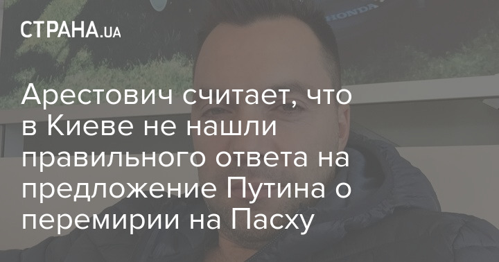 Теперь же, по мнению Арестовича, "весь мир получил наглядную демонстрацию: "зеленый царёк против прекращения огня – даже на Пасху".