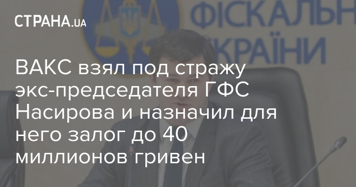 Высший антикоррупционной суд взял под стражу экс-председателя Государственной фискальной службы Романа Насирова и увеличил для него размер залога с 27 до 40 млн грн.