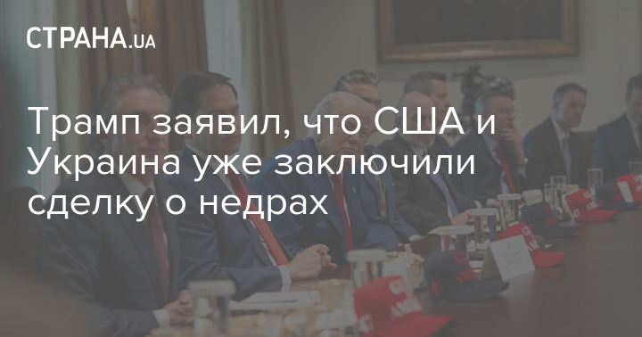 Президент США Дональд Трамп заявил, что США и Украина уже заключили соглашение о недрах.